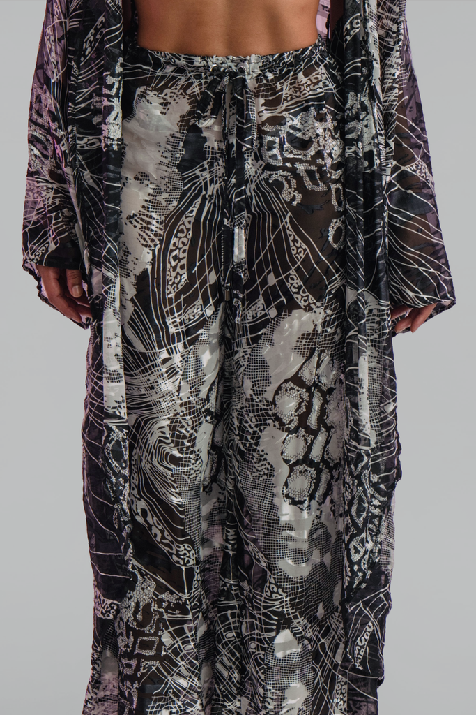 The Sina Silk Pants showcase an intricate black and white graphic print and include a drawstring waistband for a custom fit and all-day comfort. The Sina Silk Pant Set is designed to evolve with you, becoming a timeless closet staple for years to come.