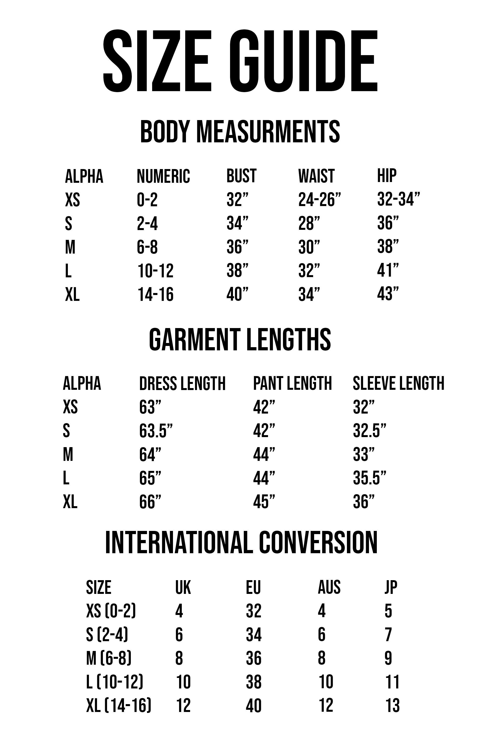 - If between sizes, we recommend sizing up for a relaxed fit or down for a body-hugging silhouette.